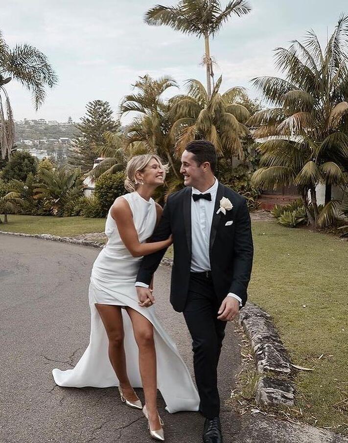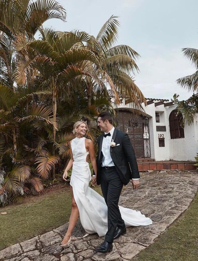 Wonderful High Neck Ivory Wedding Dresses with Side Slit