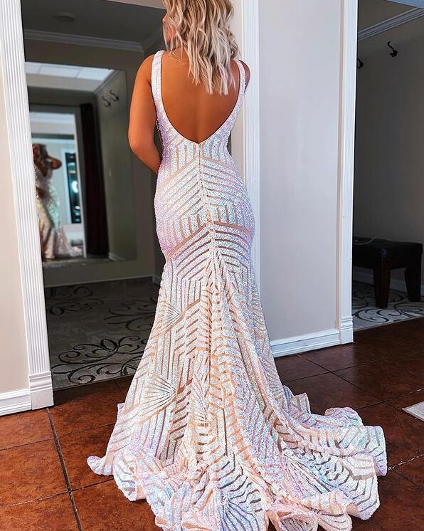 Sexy Mermaid V Neck Sequins Long Prom Dresses
