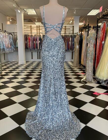 Mermaid V-Neck Silver Sequin Prom Dress With Slit