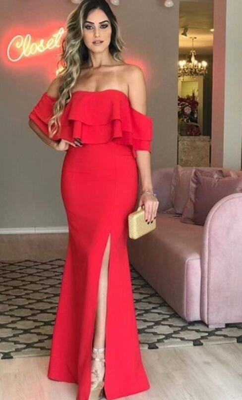 Off the Shoulder Long Evening Formal Gowns With Side Slit