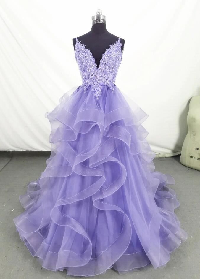 Lovely Purple Tulle Long Lace Formal Prom Dress