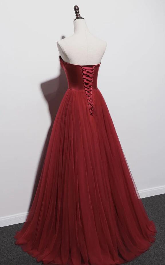 Charming Strapless Wine Red Chiffon Prom Dresses