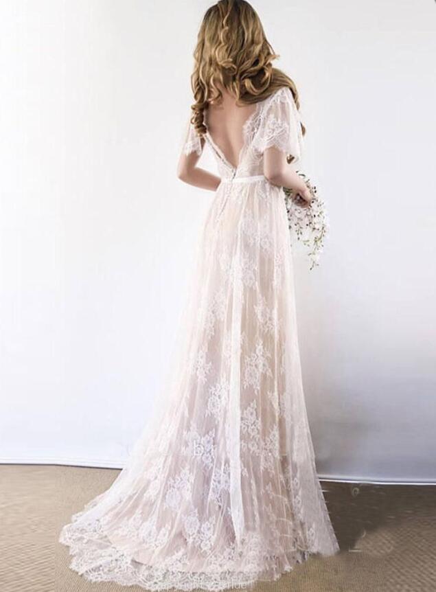Mermaid V Neck Boho Wedding Dresses with Lace Appliques