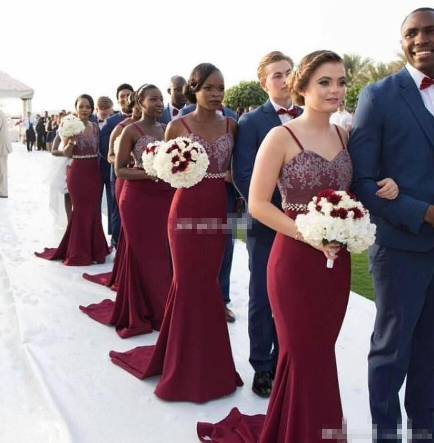 Spaghetti Straps Chiffon Lace Bridesmaid Dress With Beading Belt