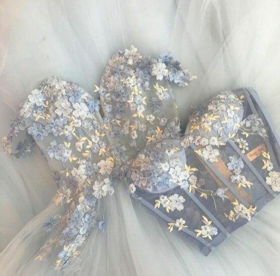 A Line Long Tulle Prom Dress With Lace Appliques