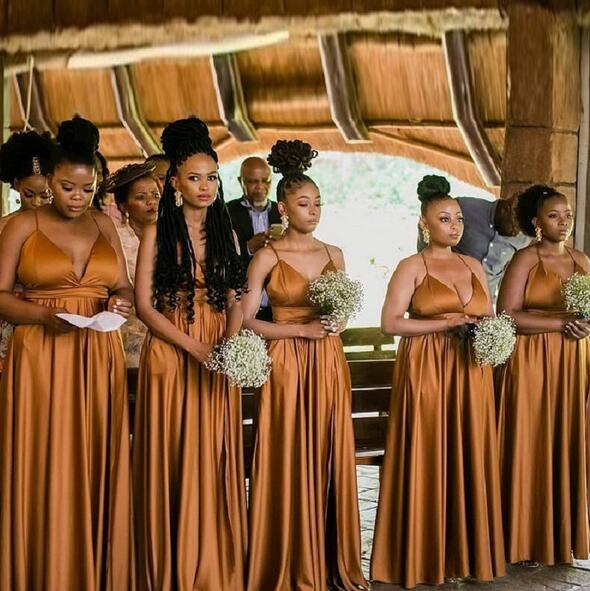 Spaghetti Straps V Neck Bridesmaid Dress for Wedding