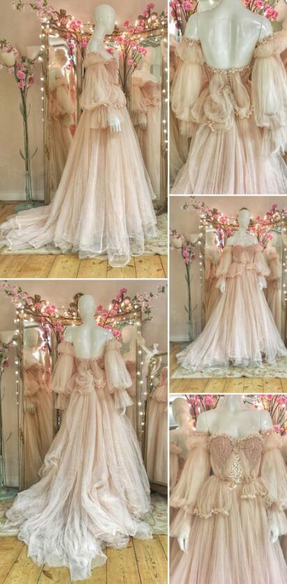 Princess Pink tulle Ruffles Long Wedding Gowns