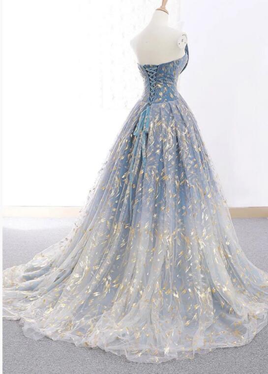 Mermaiid A Line Blue Tulle Long Strapless Evening Dresses
