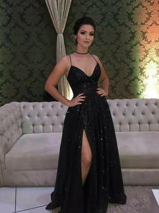 Sexy black sequin long prom Dresses