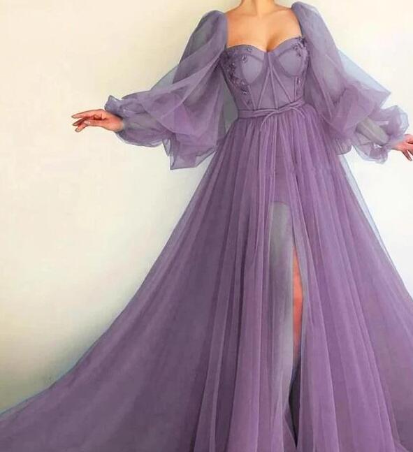 Simple A Line Long Sleeves Tulle Formal Evening Dresses