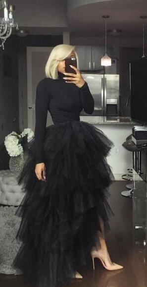 Sexy Black Long Sleeves Tulle Prom Dresses