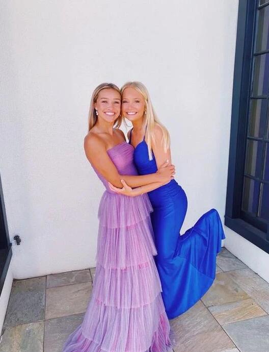 Strapless Purple Tulle Long Prom Dresses, Formal Evening Dresses