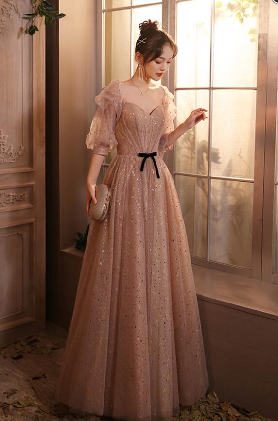 Cute A line tulle long prom dress evening dress