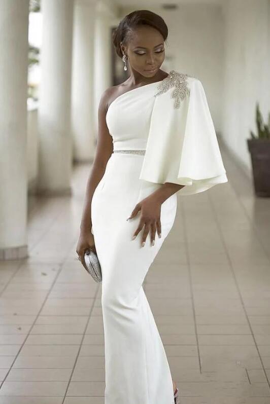 One Shoulder Ivory African Formal Prom Dress with Beading