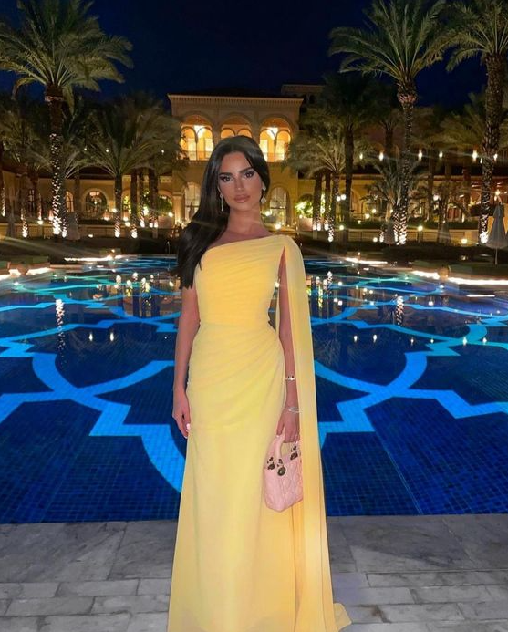 Simple A Line Chiffon Yellow Prom Dresses,Formal Gown