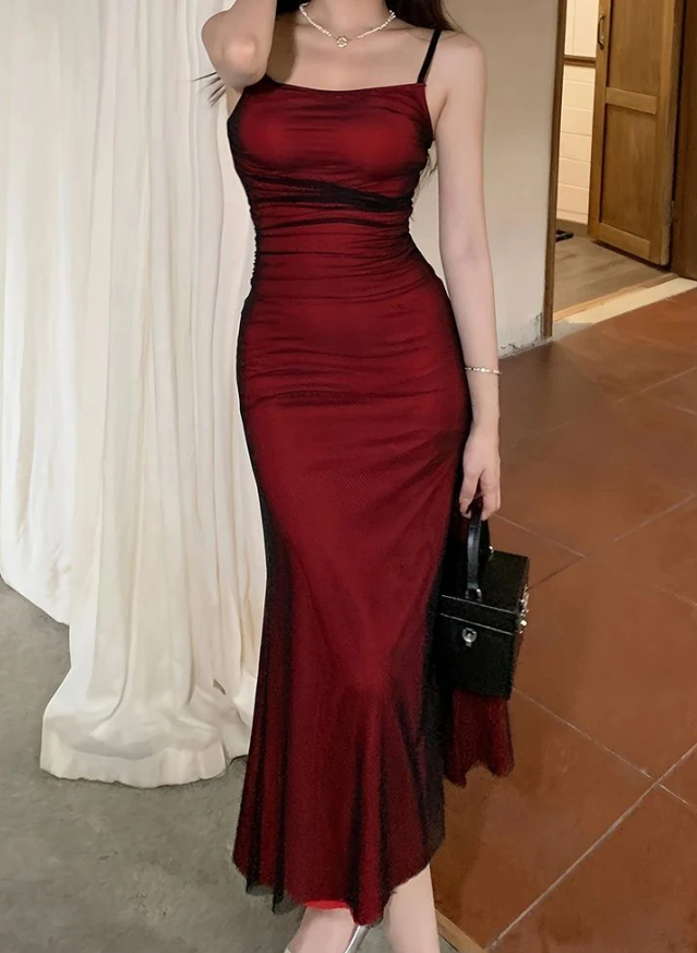 Vintage Spaghetti Strap Tea Length Prom Dresses