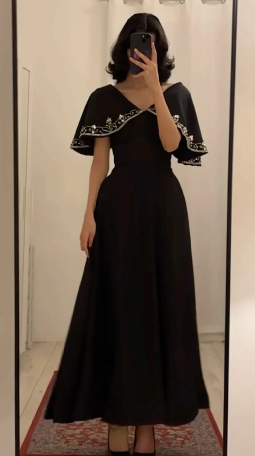 Beautiful Black A Line Floor Length Stain Prom Dresses