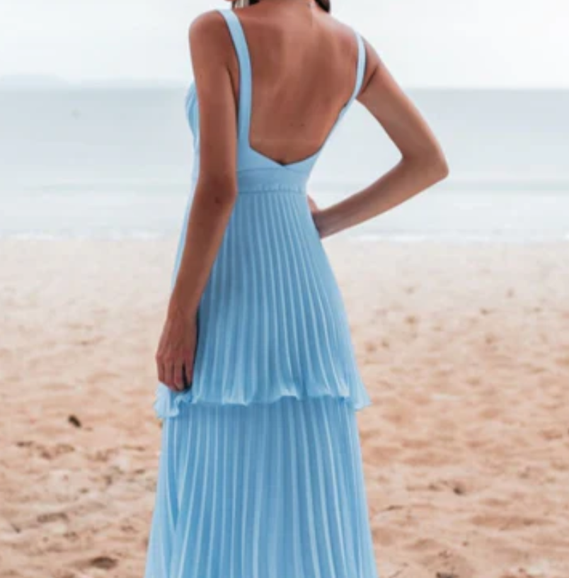 Floor Length A-line Wide Straps Blue Sleeveless Prom Dresses