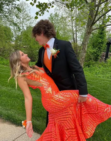 Elegant V Neck Orange Sleeveless Sequin Mermaid Prom Dresses