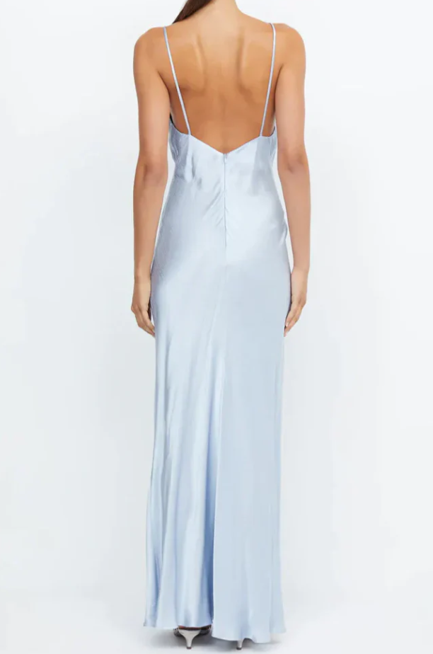 Sheath Deep V-Neck Satin Sleeveless Blue Long Evening Dresses