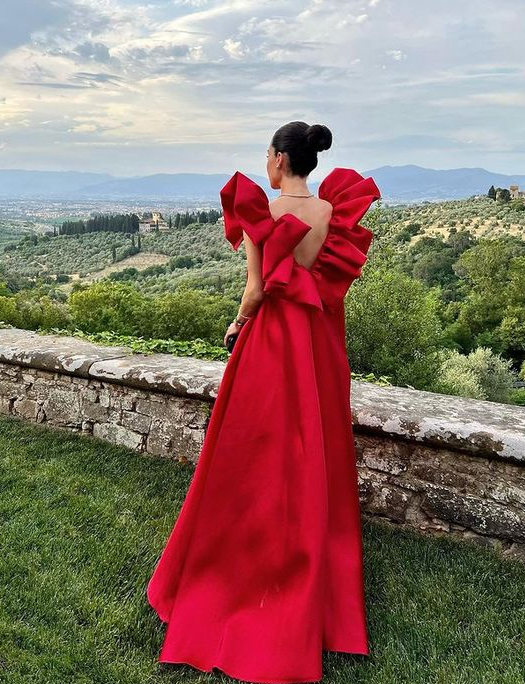 Vintage Red Long V Neck Stain Formal Prom Dress
