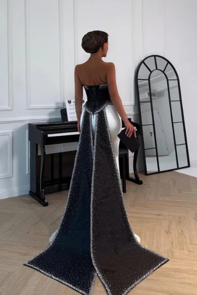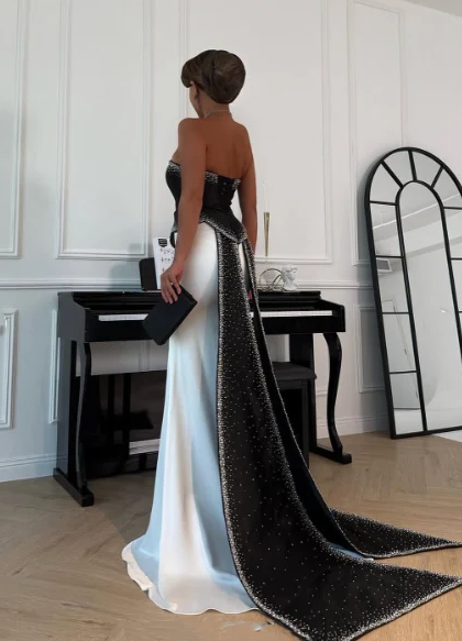 Vintage Sexy Long Stain Formal Prom Dress With Beading