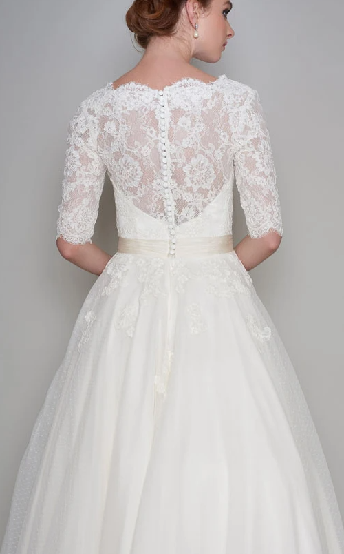 Simple Half Sleeve Ankle Length Short Wedding Dresses with applique