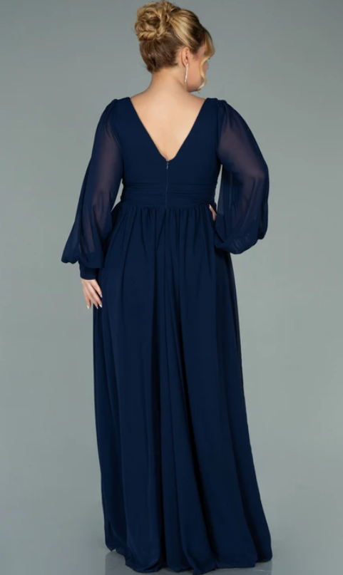 Simple Chiffon V-neck Long Sleeve Front Split Pleated Plus Size Mother Of Bridal Dress Evening Dress