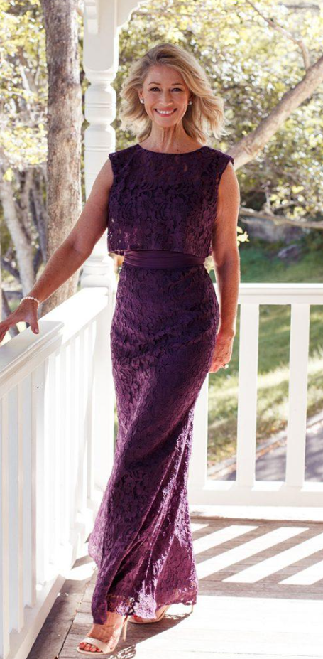 Sheath Purple Lace Mother of Bride Dress Evening Dress