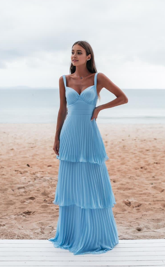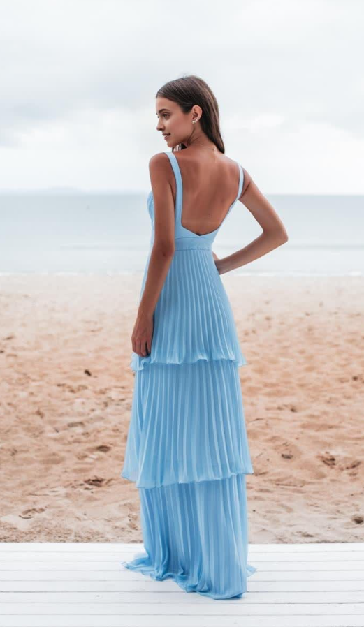 Charming Blue Long Open Back Evening Dresses Prom Dresses