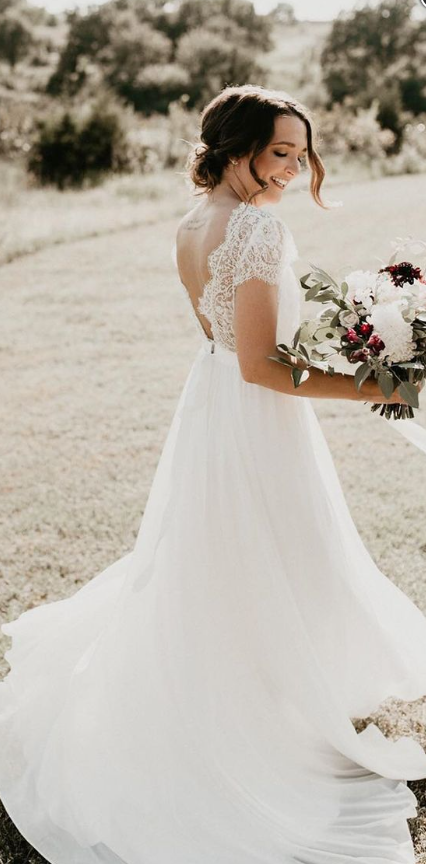 Mermaid Lace and Chiffon Long Bridal Dresses with Short Sleeves, Wedding Dresses