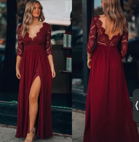 Elegant A-line Burgundy Long Mother Of Bridal Dress, Formal Prom Dress With Side Slit