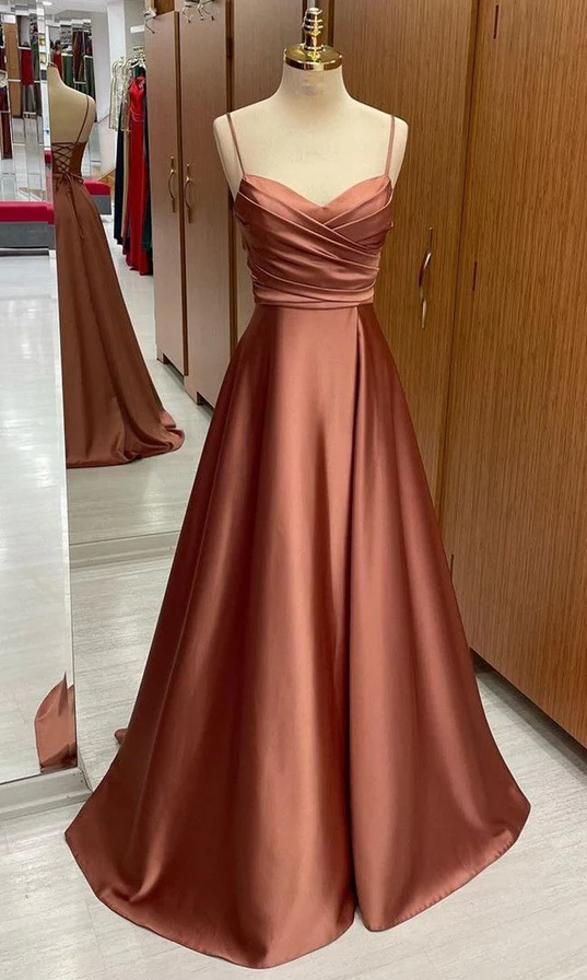Spaghetti Straps A-Line Satin Prom Dress With Lace-Up