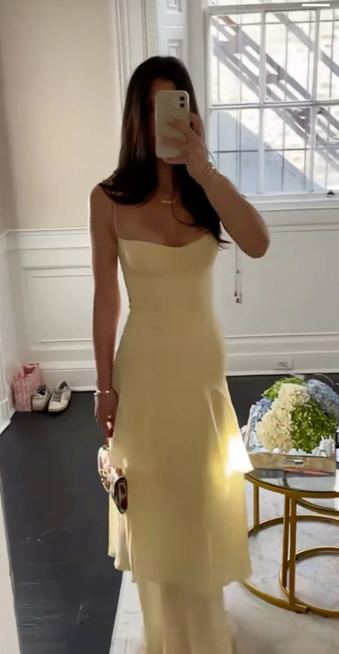 Spaghetti Straps Sheath Light Yellow Chiffon Prom Dresses Party Dress