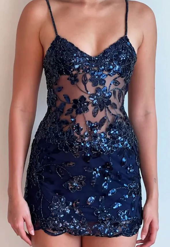 Sexy Navy Blue Mini Homecoming Dresses Beading Evening Dress