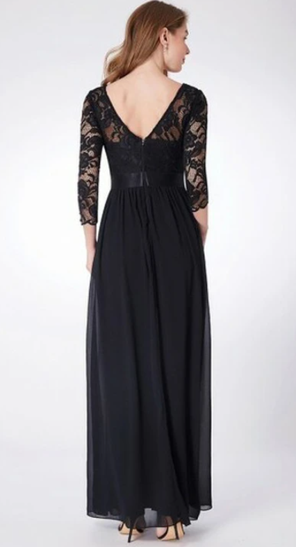 Floor-length Chiffon A Line Mother of the Bride Dress With 3/4 Length Sleeve Prom Dress