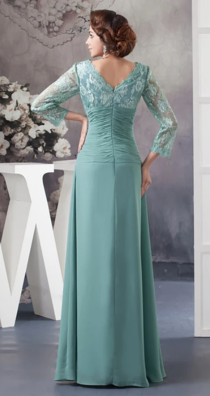 A Line V-Neck Chiffon Long Mother Of Bridal Dress With Illusion Neckline