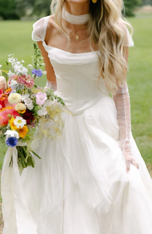 Classic A Line Strap Satin Tulle Long Wedding Dress