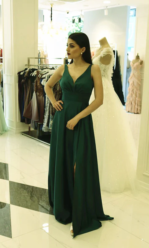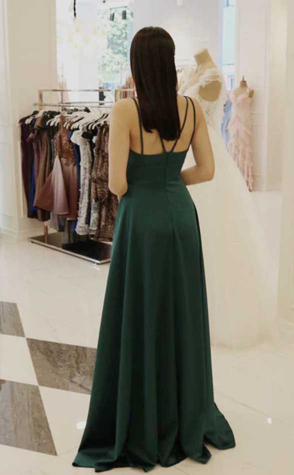 A-line High Slit Mother Of Bridal Dress Long Satin Evening Dresses